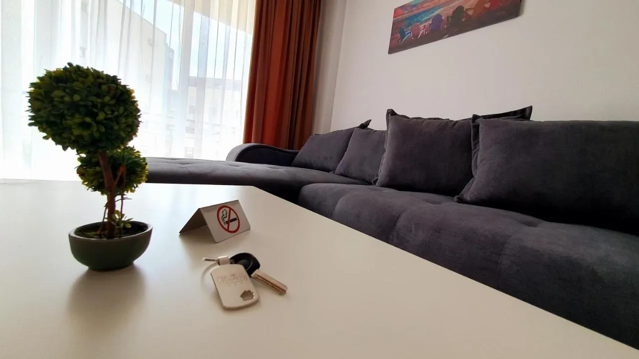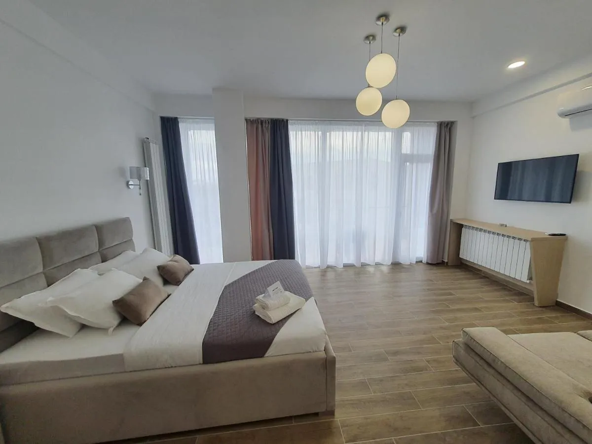 Dimensiuni: 55 mp Numar de camere: 2 camere Featuring a private entrance, this air-conditioned apartment comprises 1 living room, 1 separate bedroom and 1 bathroom with a bath and a shower. Guests will find a stovetop, a refrigerator, kitchenware and an oven in the kitchen. The apartment also provides guests with a barbecue. Boasting a terrace with garden views, this apartment also provides a washing machine and a flat-screen TV with cable channels. The unit offers 2 beds. Baie privată cu cadă
