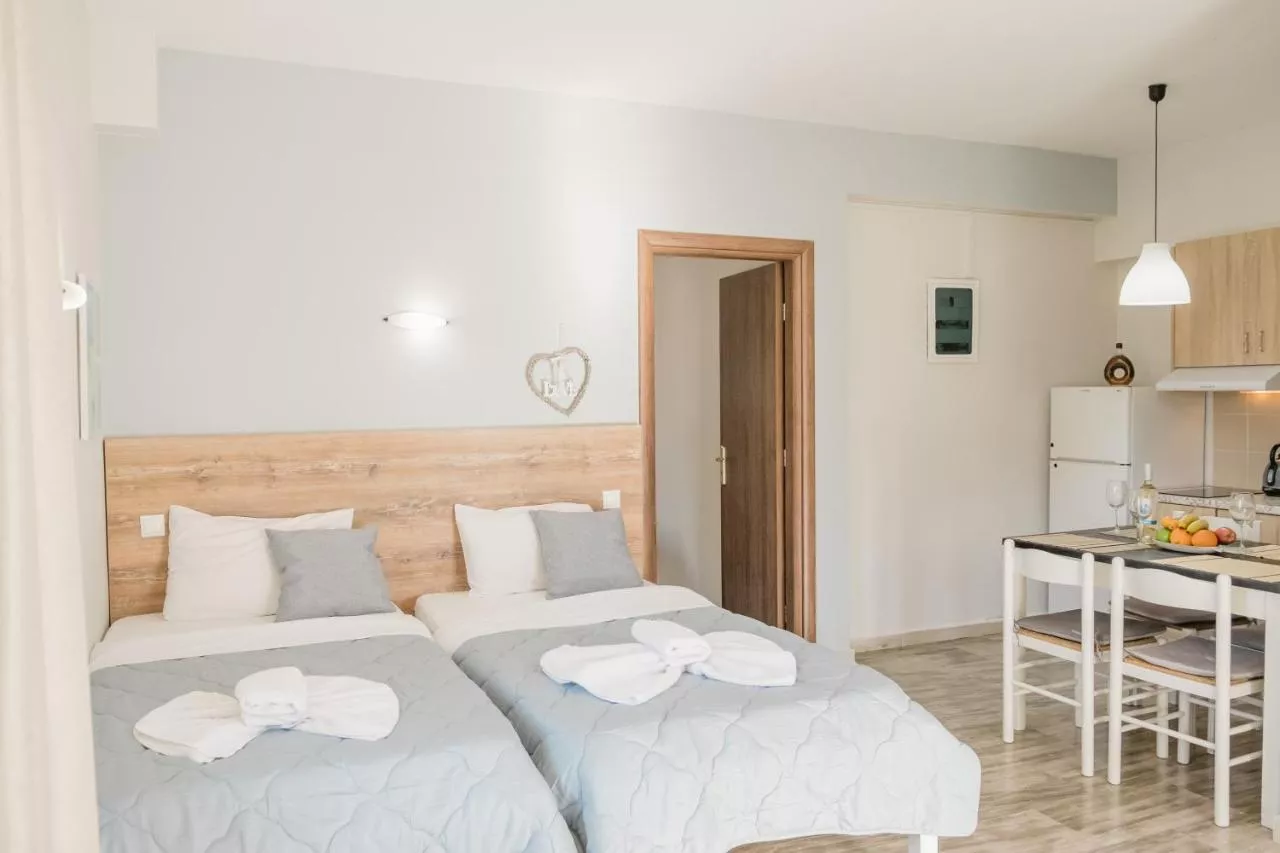 Micul dejun continental este servit zilnic la Restaurantul Oscar sau la Restaurantul Wave de pe malul mării, care servește și feluri de mâncare cretane pentru prânz și cină. Mai multe taverne și baruri pe malul mării pot fi găsite la o distanță de mers pe jos.