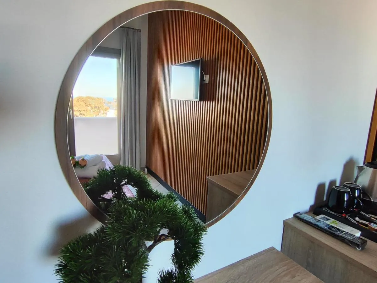 General : Seif Ventilator Facilităţi de călcat Pardoseală de gresie/marmură Încălzire Izolare fonică Aer condiţionat Vedere: Vedere la mare Vedere la munte Vedere la curtea interioară Vedere la punct de atracţie Accesibilitate: Etaje superioare accesibile doar pe scări Media/Tehnologie: TV cu ecran plat TV Telefon Canale prin cablu Canale prin satelit Servicii: Serviciu de trezire Exterior: Mobilier de grădină Balcon Facilităţile camerei: uscător de rufe Priză lângă pat Baie: Prosoape Articole de toaletă gratuite Papuci de casă Uscător de păr Toaletă Duş Hârtie igienică Baie privată Mâncăruri și băuturi: Aparat pentru prepararea de ceai/cafea Bucătărie: Frigider Cană fierbător Uscător de haine Dormitor: Lenjerie de pat Garderobă sau dulap