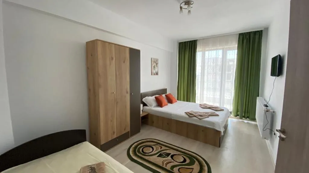 Dimensiuni: 65 mp Numar de camere: 2 camere Boasting a private entrance, this air-conditioned apartment comes with 1 living room, 1 separate bedroom and 1 bathroom with a bath and a shower. Meals can be prepared in the kitchen, which features a stovetop, a refrigerator, kitchenware and a microwave. The spacious apartment features soundproof walls, a tea and coffee maker, a dining area, a flat-screen TV with cable channels, as well as sea views. The unit has 3 beds.