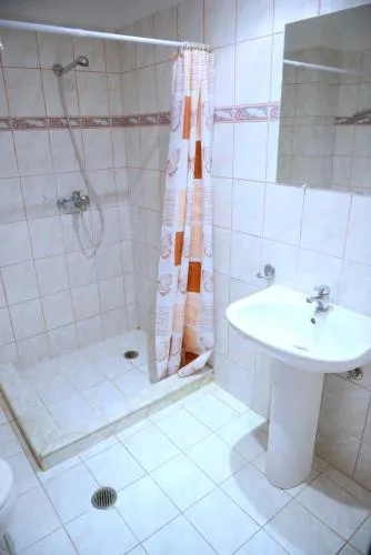 Fan and safety box are available upon surcharge. Baie privată cu cadă sau duș