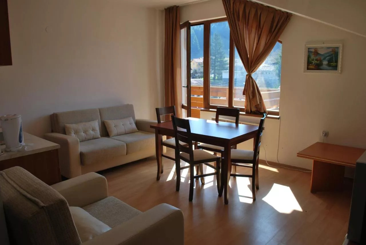 Media & Technology: TV Cable channels Food & Drink: Kitchenette Refrigerator Electric kettle Kitchenware Toaster Dining table Outdoor & View: Balcony View Mountain view Room Amenities: Seating Area Heating Sofa Hardwood or parquet floors Trash cans Bathroom: Toilet Private bathroom Bath or shower Toilet paper Services & Extras: Towels Linen Building characteristics: Private apartment in building