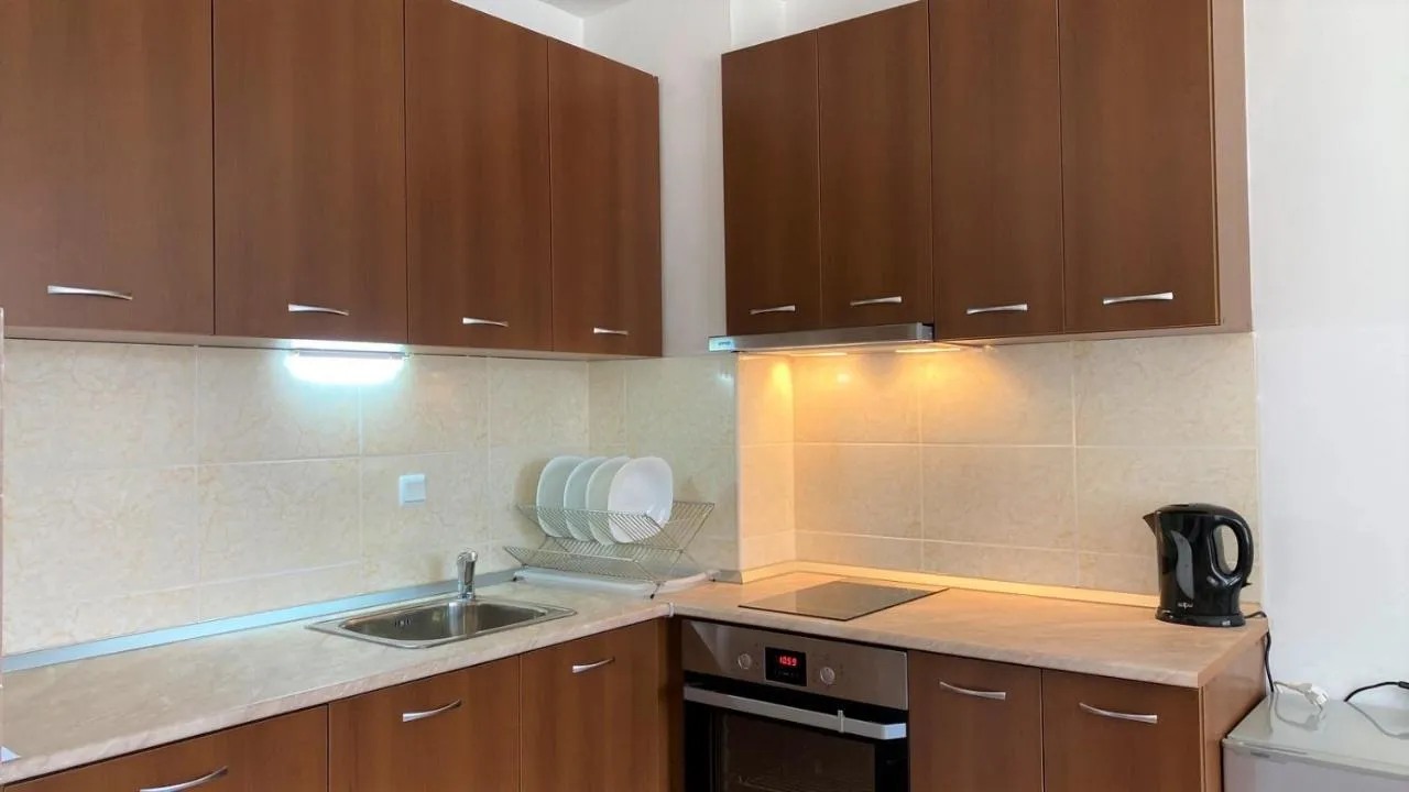 Dimensiuni: 35 mp Numar de camere: 2 camere This air-conditioned apartment comprises 1 living room, 1 separate bedroom and 1 bathroom with a walk-in shower. In the kitchenette, guests will find a stovetop, a refrigerator, kitchenware and an oven. The apartment provides a seating area, a wardrobe, an electric kettle, a sofa and a flat-screen TV with cable channels. The unit offers 2 beds. Baie privată cu duș