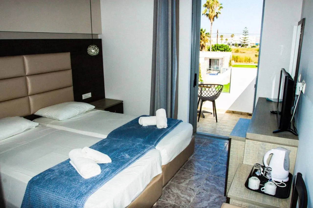 Hotelul Sunshine Tigaki este situat la 300 de metri de plaja, în satul Tigaki. Acesta oferă o piscină în aer liber înconjurată de șezlonguri simple gratuite, șezlonguri deluxe cu taxă suplimentară și apartamente cu balcon cu vedere la piscină, grădină sau Marea Egee.