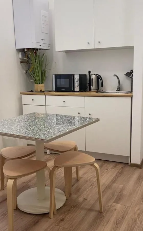 General : Pardoseală de lemn sau parchet Pardoseală de gresie/marmură Intrare privată Încălzire Bucătărie: Masă Cuptor cu microunde Frigider Plită de gătit Ustensile de bucătărie Chicinetă Cană fierbător Bucătărie Accesibilitate: Etaje superioare accesibile doar pe scări Media/Tehnologie: TV cu ecran plat TV Canale prin cablu Canale prin satelit Dormitor: Paturi extra lungi (> 2 metri) Lenjerie de pat Garderobă sau dulap Zonă de living: Canapea Zonă de relaxare Baie: Prosoape Articole de toaletă gratuite Uscător de păr Toaletă Duş Hârtie igienică Baie privată Caracteristicile clădirii: Apartament privat în clădire Facilităţile camerei: Priză lângă pat Vedere: Vedere la curtea interioară Curățenie și dezinfectare: Dezinfectant pentru mâini