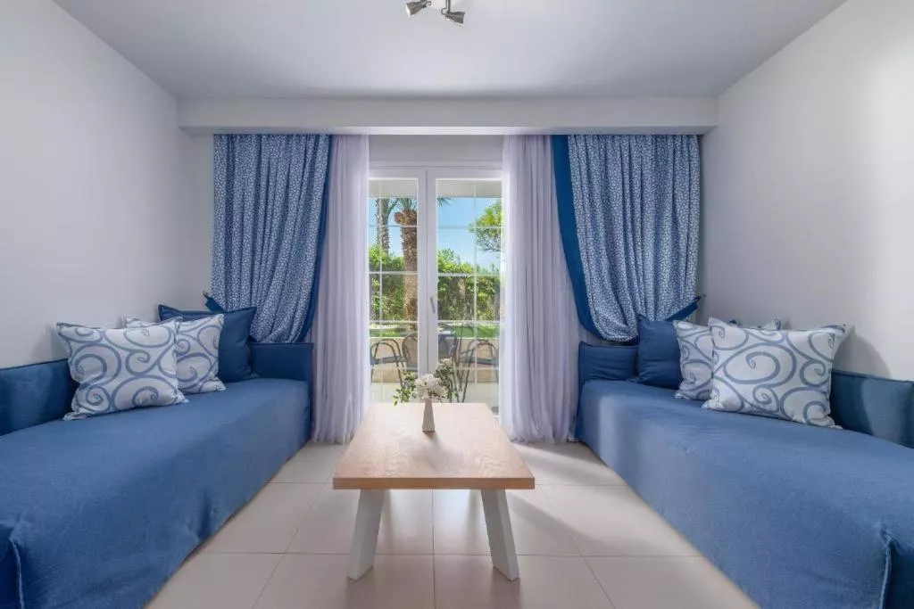 Dimensiuni: 60 mp Numar de camere: 1 camera Oaspeții se vor bucura de o experiență deosebită, deoarece această suită beneficiază de acces la o piscină cu vedere. Această suită spațioasă include 1 living, 2 dormitoare separate și 1 baie cu o cadă și articole de toaletă gratuite. Suita are intrare privată, aer condiționat, TV cu ecran plat cu canale prin satelit, zonă de relaxare, minibar și vedere la mare. Unitatea de cazare include 3 paturi. Baie privată cu cadă