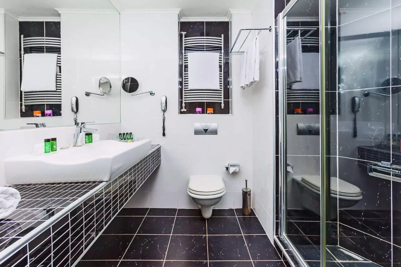 Baie: Halat de baie Prosoape Articole de toaletă gratuite Uscător de păr Toaletă Hârtie igienică Cadă Baie privată General : Seif Pardoseală de gresie/marmură Intrare privată Încălzire Aer condiţionat Accesibilitate: Etaje superioare accesibile cu liftul Întreaga unitate accesibilă cu scaunul cu rotile Media/Tehnologie: TV cu ecran plat TV Telefon Canale prin cablu Facilităţile camerei: Pat pliant Exterior: Balcon Dormitor: Lenjerie de pat Garderobă sau dulap Mâncăruri și băuturi: Minibar