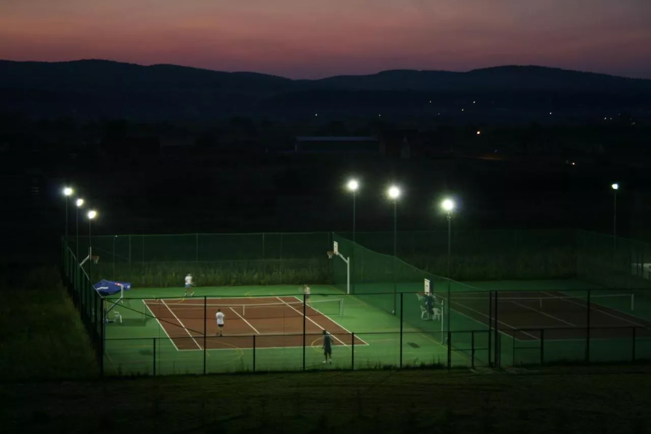 Pe teren se găsesc și diverse facilități sportive, inclusiv terenuri de fotbal, tenis și baschet.