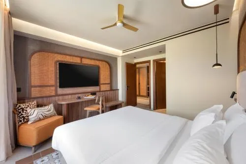 Bucătărie: Mașină de cafea Cană fierbător General : Seif Ventilator Pardoseală de gresie/marmură Izolare fonică Plasă de ţânţari Cameră(e) comunicantă(e) disponibilă(e) Aer condiţionat Media/Tehnologie: TV cu ecran plat TV Telefon Canale prin satelit Servicii: Serviciu de trezire Zonă de living: Canapea Vedere: Vedere la piscină Vedere la grădină Baie: Prosoape Uscător de păr Toaletă Hârtie igienică Cadă Baie privată Accesibilitate: Întreaga unitate accesibilă cu scaunul cu rotile Exterior: Terasă Balcon Mâncăruri și băuturi: Aparat pentru prepararea de ceai/cafea Minibar Facilităţile camerei: Canapea extensibilă Distanțare fizică: Aer condiționat individual pentru fiecare cameră de la proprietate Dormitor: Garderobă sau dulap Curățenie și dezinfectare: Dezinfectant pentru mâini