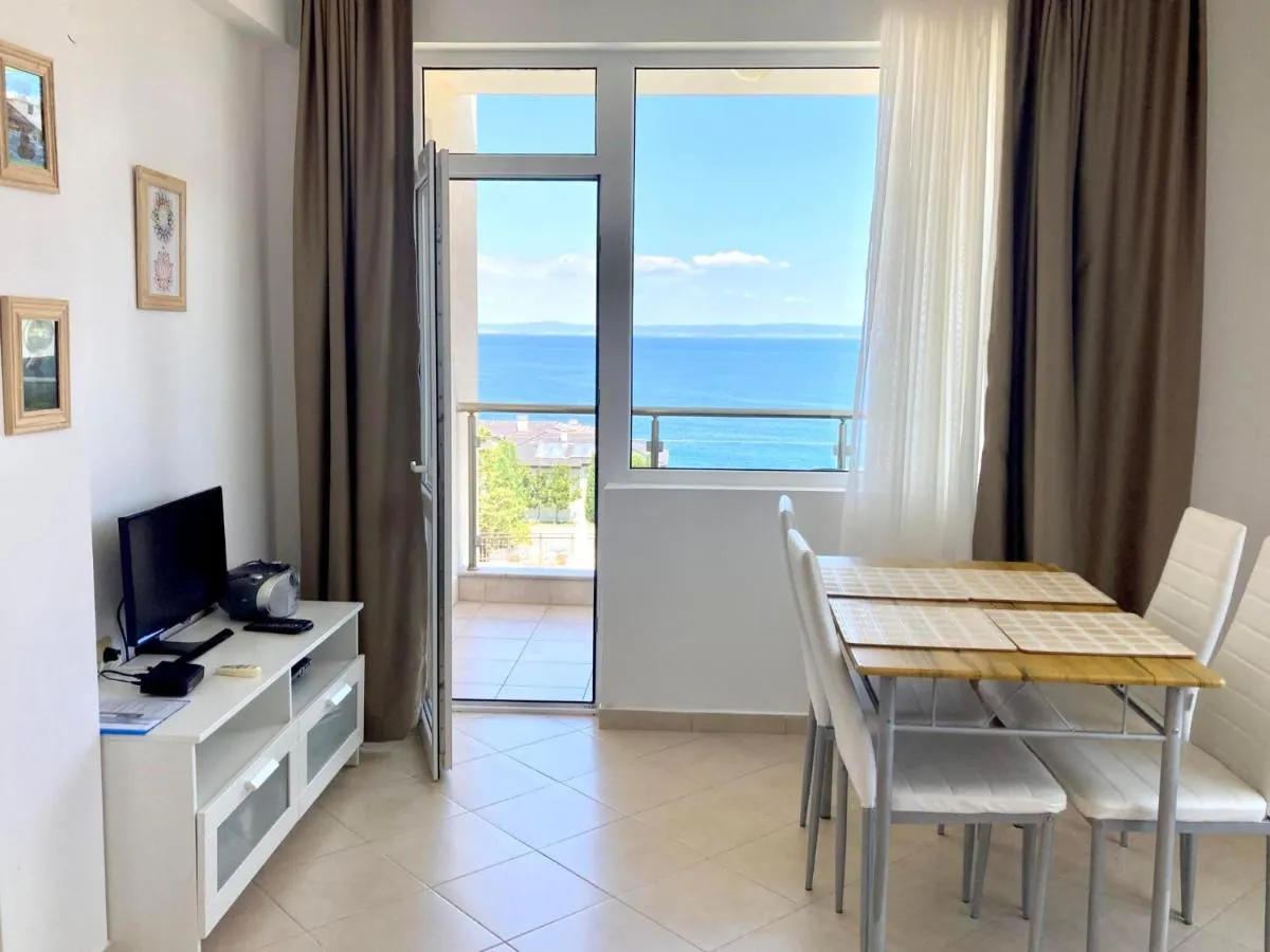 Dimensiuni: 50 mp Numar de camere: 2 camere The pool with a view is a top feature of this apartment. This apartment comes with 1 living room, 1 separate bedroom and 1 bathroom with a shower and free toiletries. The fully equipped kitchen has a stovetop, a refrigerator, kitchenware and an oven. Boasting a terrace with sea views, this apartment also features air conditioning and a flat-screen TV with cable channels. The unit has 2 beds. Baie privată cu duș