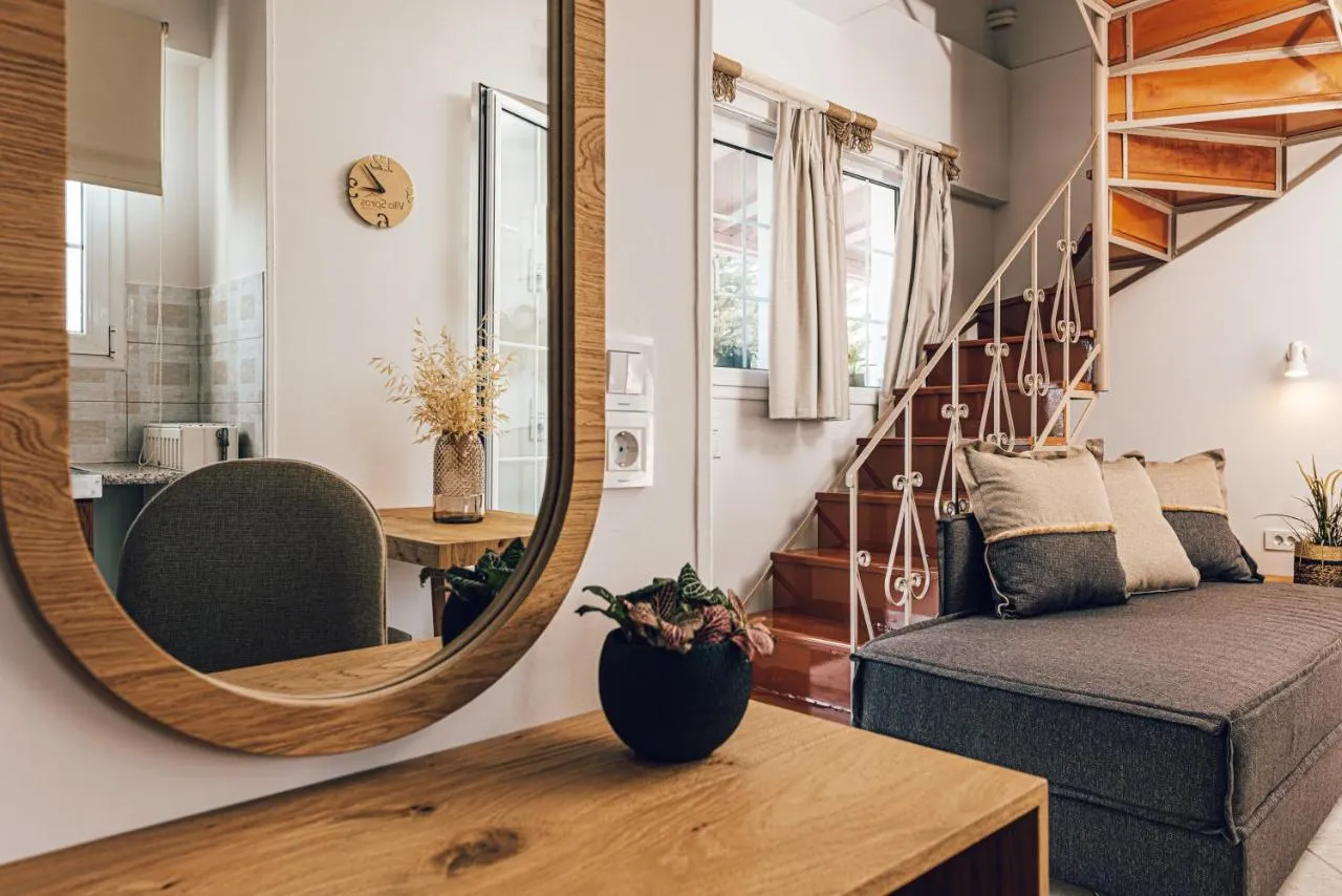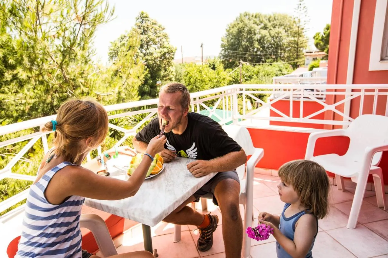 Cartierul nostru este situat într-un loc liniștit și plin de verdeață, înconjurat de vii și măslini, la doar 200 de metri de celebrele cluburi de noapte (Rescue, Zeros, Cocktails and Dreams, Medousa etc.) și viața de noapte din Laganas, dar suficient de departe de zgomotul centrului, într-un mediu familial.