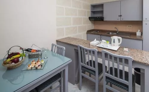 Free mini-bar refilling on daily basis with soft drinks, hard drinks, cookies, fresh flowers and fresh fruits