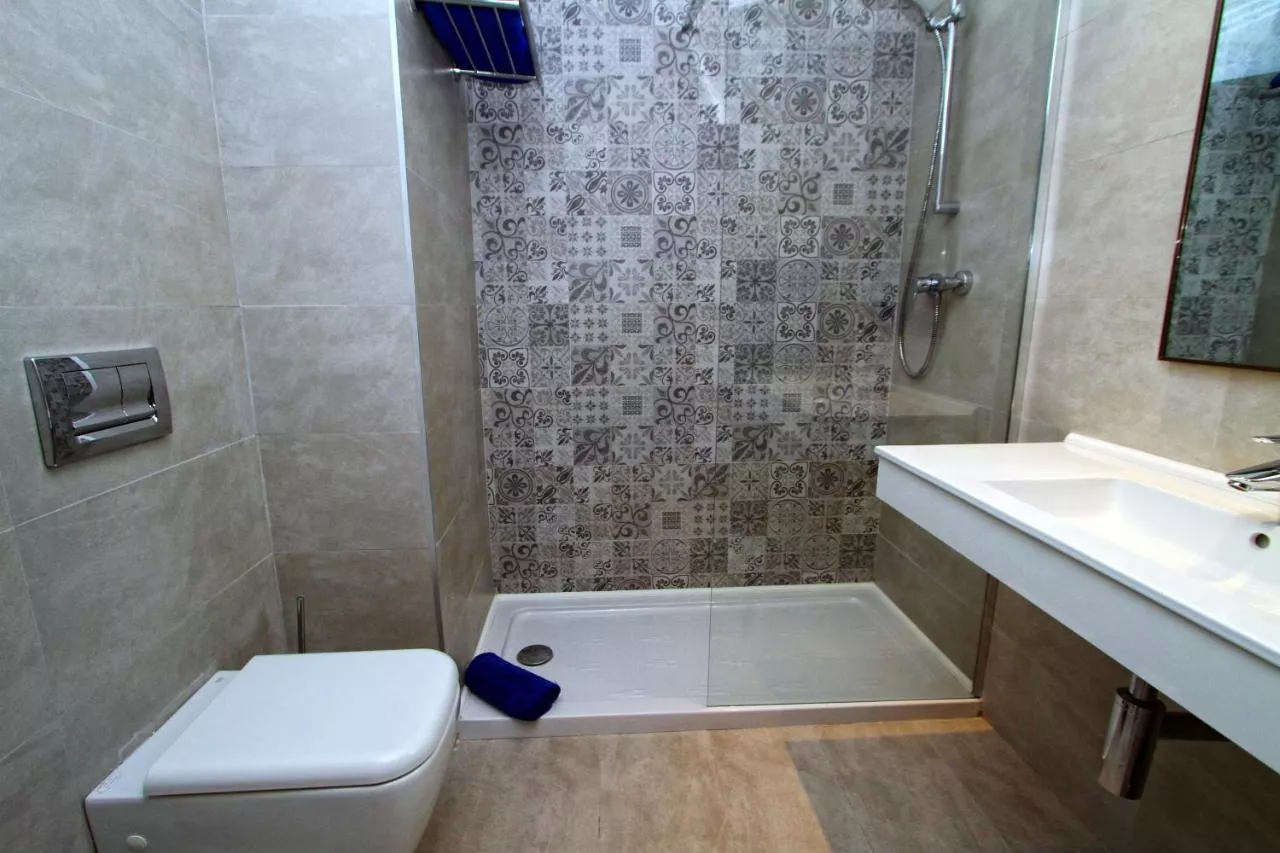Camerele de la Sahara Beach au baie privată. Oferă vederi parțiale la mare și la grădina înflorită a hotelului.
