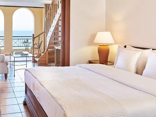 La hotel, camerele includ un balcon. Toate camerele sunt dotate cu o baie privată cu cadă. Toate unitățile de la Grecotel Olympia Oasis & Aqua Park dispun de aer condiționat și un dulap.