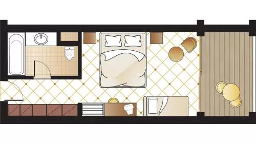 Dimensiuni: 30 mp Numar de camere: 20 camere The spacious double room provides air conditioning, a minibar, as well as a private bathroom featuring a bath and a hairdryer. Boasting a terrace, this double room also features a wardrobe, a tiled floor and a flat-screen TV with satellite channels. The unit offers 2 beds. Baie privată cu cadă