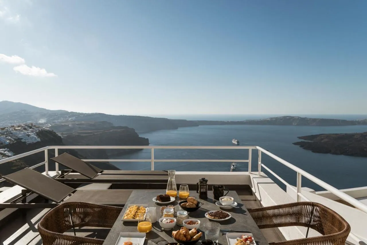 The Suite features an outdoor balcony/terrace that offers Panoramic Caldera and Volcano Sea view.