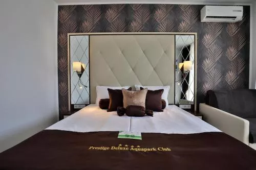 Prestige Deluxe Hotel Aquapark Club este o proprietate de 4 stele situată în centrul stațiunii Golden Sands, la doar 350 de metri de promenada principală și de plajă, într-o zonă calmă, natural-verde.