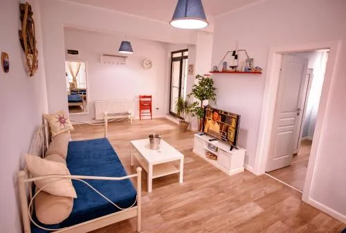 Dimensiuni: 48 mp Numar de camere: 1 camera Decorated in light blue and white tones, this apartment has air conditioning, soundproofing and a living room fitted with 2 sofas. Baie privată cu duș