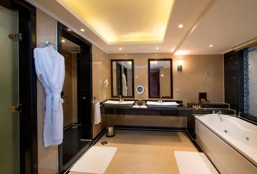 Dimensiuni: 65 mp Numar de camere: 1 camera The hot tub and spa bath are the special features of this suite. The spacious air-conditioned suite offers a flat-screen TV with satellite channels, a minibar, a tea and coffee maker, executive lounge access as well as sea views. The unit has 1 bed.