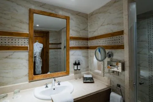 Dimensiuni: 43 mp Numar de camere: 20 camere Această cameră Deluxe are 1 pat king-size sau 2 paturi duble, aer condiționat şi balcon sau terasă cu vedere la grădină sau la una dintre piscine. De asemenea, camera include o mică zonă de relaxare dotată cu TV LCD cu canale prin satelit, telefon cu linie directă, minibar cu apă minerală gratuită, facilități de ceai şi cafea şi un dulap mare, cu seif gratuit. Baia privată are duș, uscător de păr, oglindă cosmetică/pentru bărbierit şi articole de toaletă gratuite. Baie privată cu duș