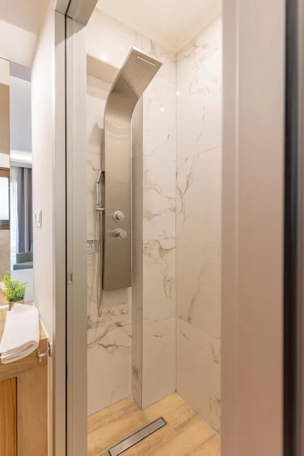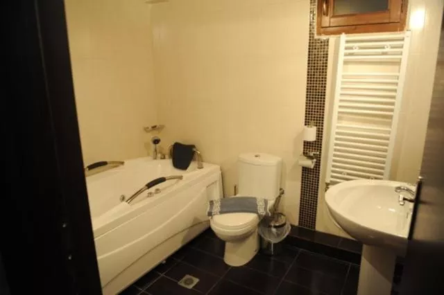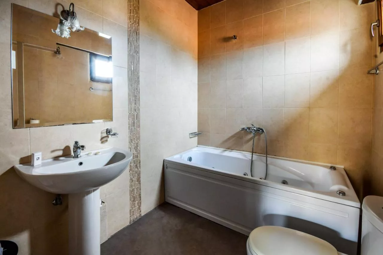 Dimensiuni: 50 mp Numar de camere: 1 camera Această suită spațioasă are living cu șemineu, pereți din piatră și tavan cu grinzi din lemn. Unitatea are cadă spa, balcon cu vedere la Muntele Cholomontas și: