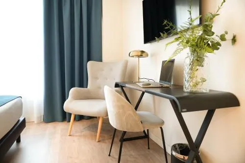 General : Seif Pardoseală de lemn sau parchet Hipoalergică Intrare privată Încălzire Izolare fonică Aer condiţionat Accesibilitate: Etaje superioare accesibile cu liftul Întreaga unitate accesibilă cu scaunul cu rotile Media/Tehnologie: TV cu ecran plat TV Telefon Servicii: Serviciu de trezire Baie: Prosoape Articole de toaletă gratuite Uscător de păr Toaletă Duş bideu Hârtie igienică Cadă Baie privată Facilităţile camerei: Priză lângă pat Mâncăruri și băuturi: Aparat pentru prepararea de ceai/cafea Minibar Dormitor: Lenjerie de pat Garderobă sau dulap Vedere: Vedere la oraș Bucătărie: Cană fierbător Produse de curățenie