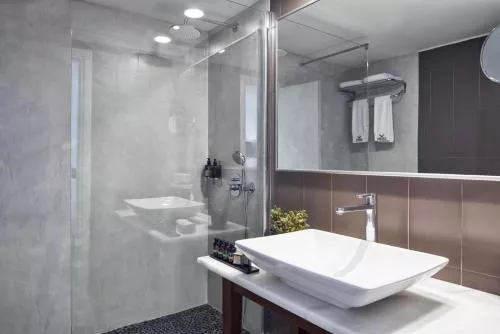 Baie: Halat de baie Prosoape Articole de toaletă gratuite Papuci de casă Uscător de păr Cadă spa Toaletă Duş Hârtie igienică Baie privată Bucătărie: Mașină de cafea Frigider Cană fierbător General : Seif Fier de călcat Facilităţi de călcat Hipoalergică Pardoseală de gresie/marmură Încălzire Izolare fonică Aer condiţionat Vedere: Vedere la mare Vedere la piscină Vedere la oraș Accesibilitate: Etaje superioare accesibile doar pe scări Media/Tehnologie: TV cu ecran plat TV Serviciu de streaming (ex. Netflix) Telefon Canale prin cablu Canale prin satelit Dormitor: Paturi extra lungi (> 2 metri) Lenjerie de pat Garderobă sau dulap Servicii: Serviciu de trezire Zonă de living: Canapea Zonă de relaxare Exterior: Mobilier de grădină Terasă Balcon Zonă de luat masa în aer liber Facilităţile camerei: Priză lângă pat Canapea extensibilă Mâncăruri și băuturi: Aparat pentru prepararea de ceai/cafea Activităţi: Cadă cu hidromasaj