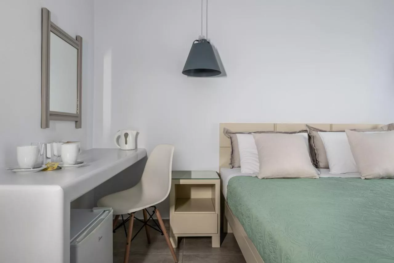 Dimensiuni: 18 mp Numar de camere: 1 camera Decorated in Cycladic style, this elegant room features free WiFi, safe, air conditioning, TV and a bathroom with free toiletries. It has a double bed and opens up to a furnished balcony.
