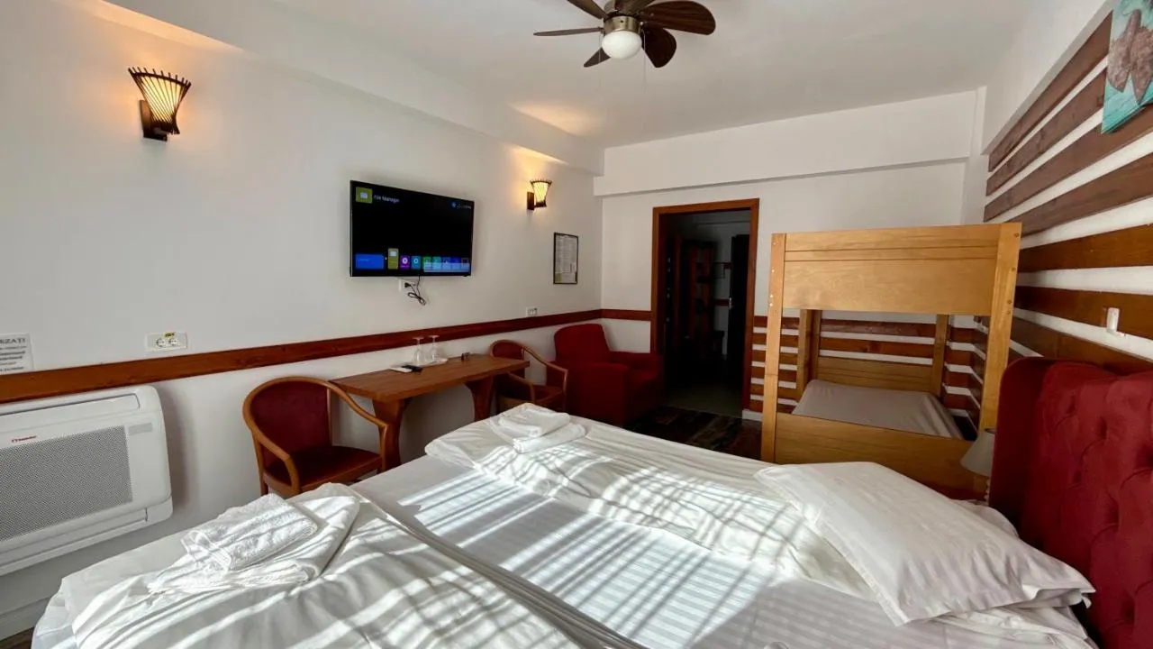 Dimensiuni: 28 mp Numar de camere: 2 camere Camera de familie are aer condiționat, dulap și baie privată cu duș și uscător de păr. De asemenea, această cameră de familie oferă podea cu mochetă, sistem de încălzire, TV cu ecran plat și balcon. Unitatea este prevăzută cu 2 paturi.