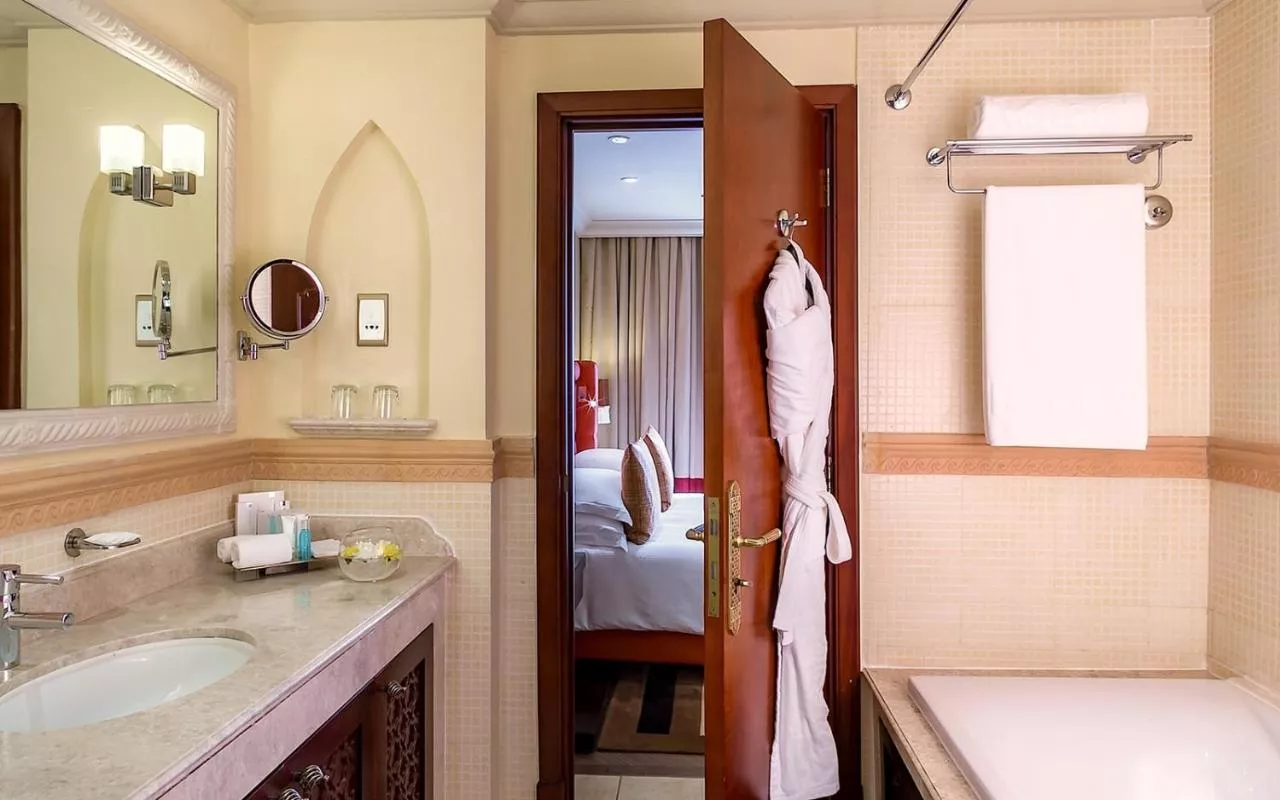 Dimensiuni: 93 mp Numar de camere: 1 camera This deluxe one-bedroom suite features scenic views of Palm Island Bay or the city skyline. It has an open-plan living room, a dining room and a well-equipped kitchen. The bathroom is fitted with a bath and shower.