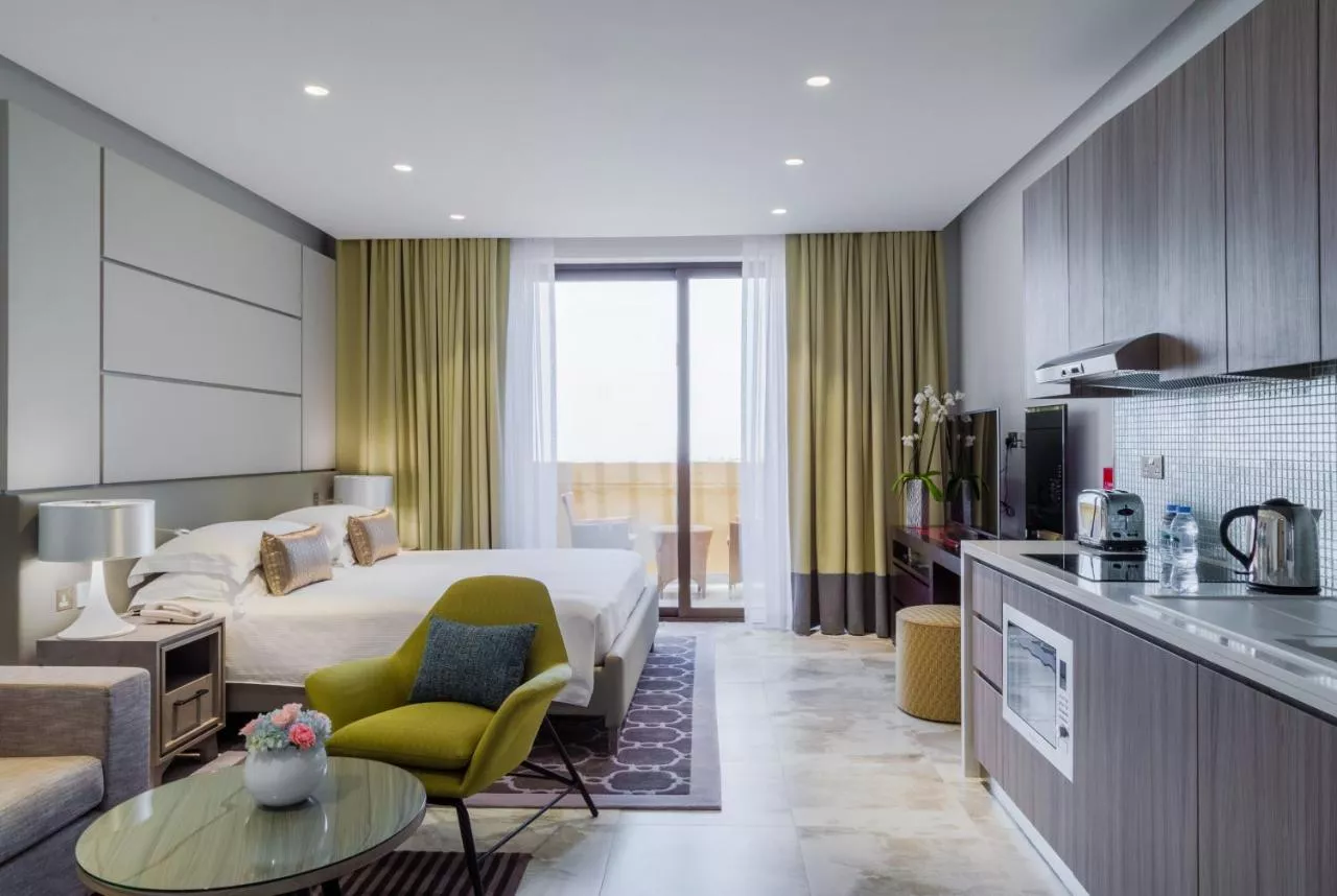 Suitele și apartamentele spațioase ale Arjaan by Rotana prezintă interioare contemporane în stil maur, care se deschid spre balcoane cu vederi pitorești asupra orașului și mării. Oaspeții se pot relaxa în camera de zi spațioasă, care este dotată cu un televizor LCD. Există o bucătărie complet echipată, care include un cuptor, o plită și un cuptor cu microunde.