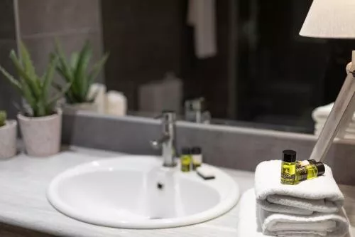 Dimensiuni: 35 mp Numar de camere: 1 camera Fitted with Coco-Mat pillows, this air-conditioned suite has a living room with flat-screen, satellite TV. It features 2 balconies with Skiathos Town views and a bathroom with hairdryer, slippers and bathrobes. Pool towels are provided. Baie privată cu duș