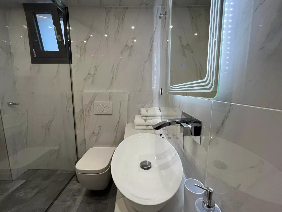 Dimensiuni: 50 mp Numar de camere: 1 camera Featuring a private entrance, this air-conditioned holiday home consists of 1 living room, 1 separate bedroom and 2 bathrooms with a walk-in shower and a hairdryer. Guests can make meals in the kitchen that is equipped with a stovetop, a refrigerator, kitchenware and an oven. Boasting a terrace with sea views, this holiday home also provides a washing machine and a flat-screen TV with cable channels. The unit offers 2 beds. Baie privată cu duș