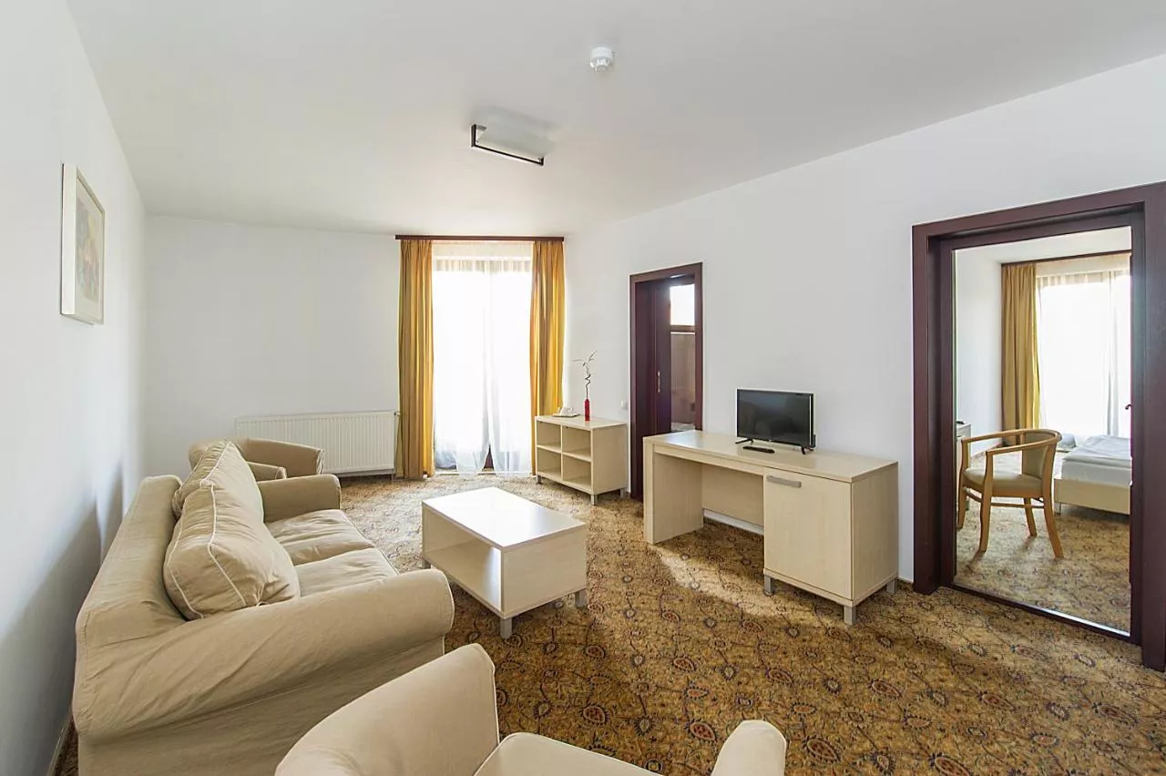 Dimensiuni: 38 mp Numar de camere: 1 camera This room has a large double bed and a living with a sofa bed with private bathroom, hairdryer, towels,free toiletries.