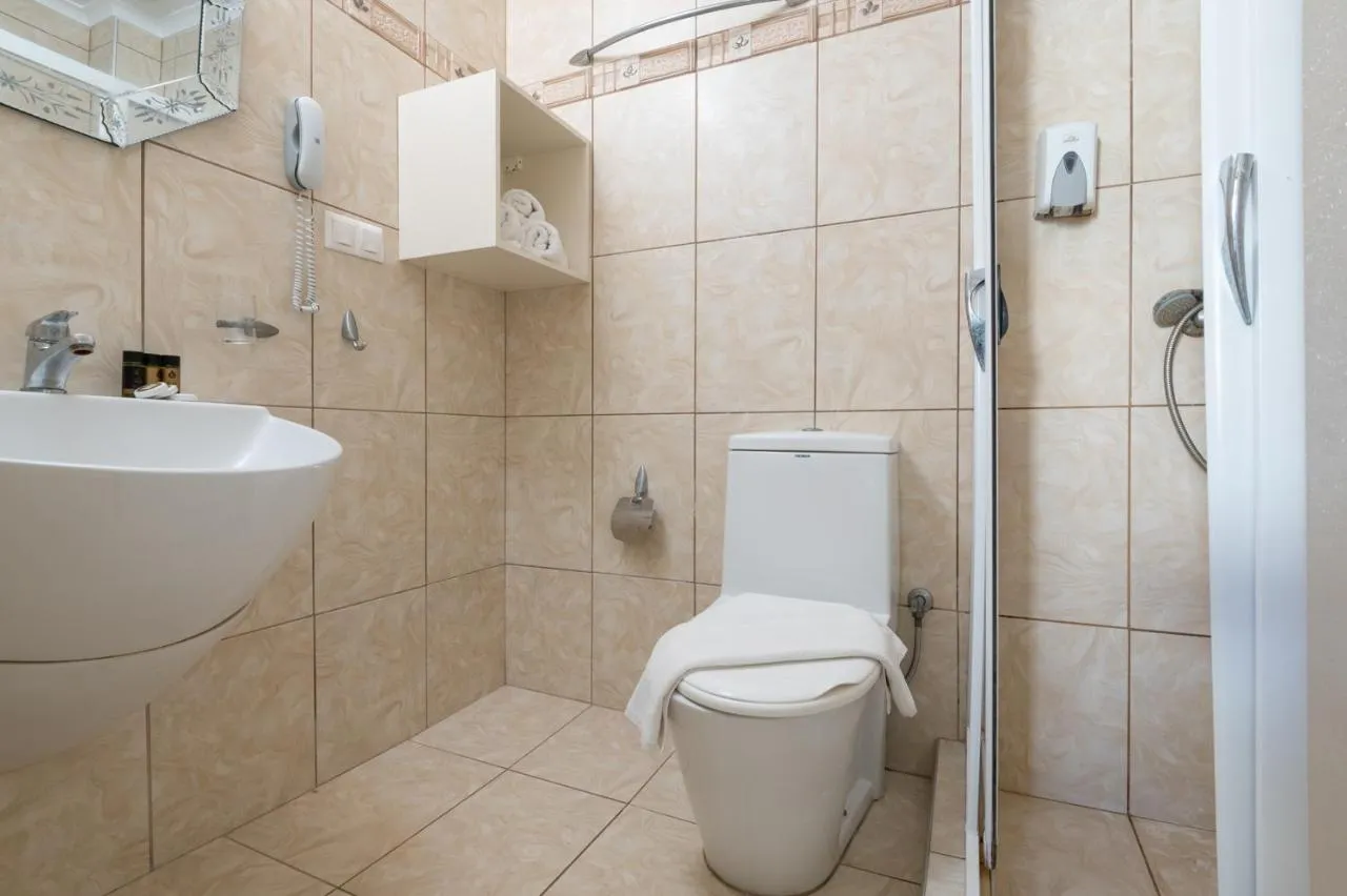 Closet-wardrobe, sat TV, Safe, Air condition, fridge, water boiler, bathroom amenities, hair dryer. Baie privată cu duș