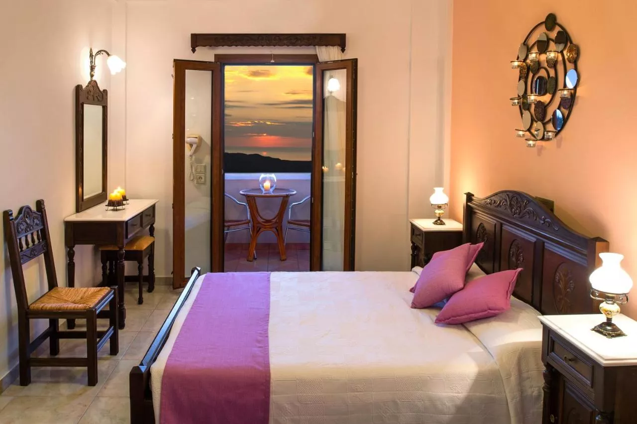 Dimensiuni: 18 mp Numar de camere: 1 camera Featuring a private balcony overlooking the Caldera and the volcano of Santorini, these spacious, air-conditioned rooms face the sunset.
