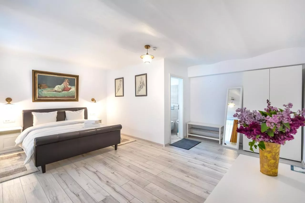 Dimensiuni: 43 mp Numar de camere: 2 camere The spacious double room provides air conditioning, soundproof walls, as well as a private bathroom featuring a walk-in shower and a hairdryer. The double room offers a TV, a wardrobe, a sofa, parquet floors as well as a quiet street view. The unit offers 2 beds. Baie privată cu duș