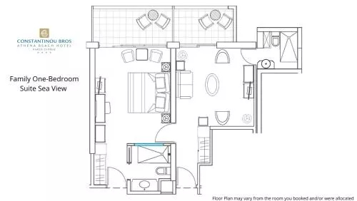 Dimensiuni: 26 mp Numar de camere: 2 camere Această cameră are o baie somptuoasă și balcon privat cu o vedere impresionantă la Marea Mediterană. De asemenea, oferă o terasă cu șezlonguri.
