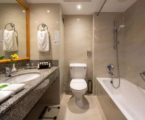 General : Seif pentru laptop Seif Pardoseală de lemn sau parchet Facilităţi de călcat Încălzire Aer condiţionat Baie: Halat de baie Prosoape Articole de toaletă gratuite Papuci de casă Uscător de păr Toaletă Duş Hârtie igienică Cadă Baie privată Bucătărie: Mașină de cafea Frigider Cană fierbător Accesibilitate: Etaje superioare accesibile cu liftul Media/Tehnologie: TV cu ecran plat TV Telefon Canale prin satelit Servicii: Serviciu de trezire Zonă de living: Zonă de relaxare Facilităţile camerei: Priză lângă pat Pat pliant Mâncăruri și băuturi: Aparat pentru prepararea de ceai/cafea Vedere: Vedere Dormitor: Lenjerie de pat Garderobă sau dulap Curățenie și dezinfectare: Dezinfectant pentru mâini