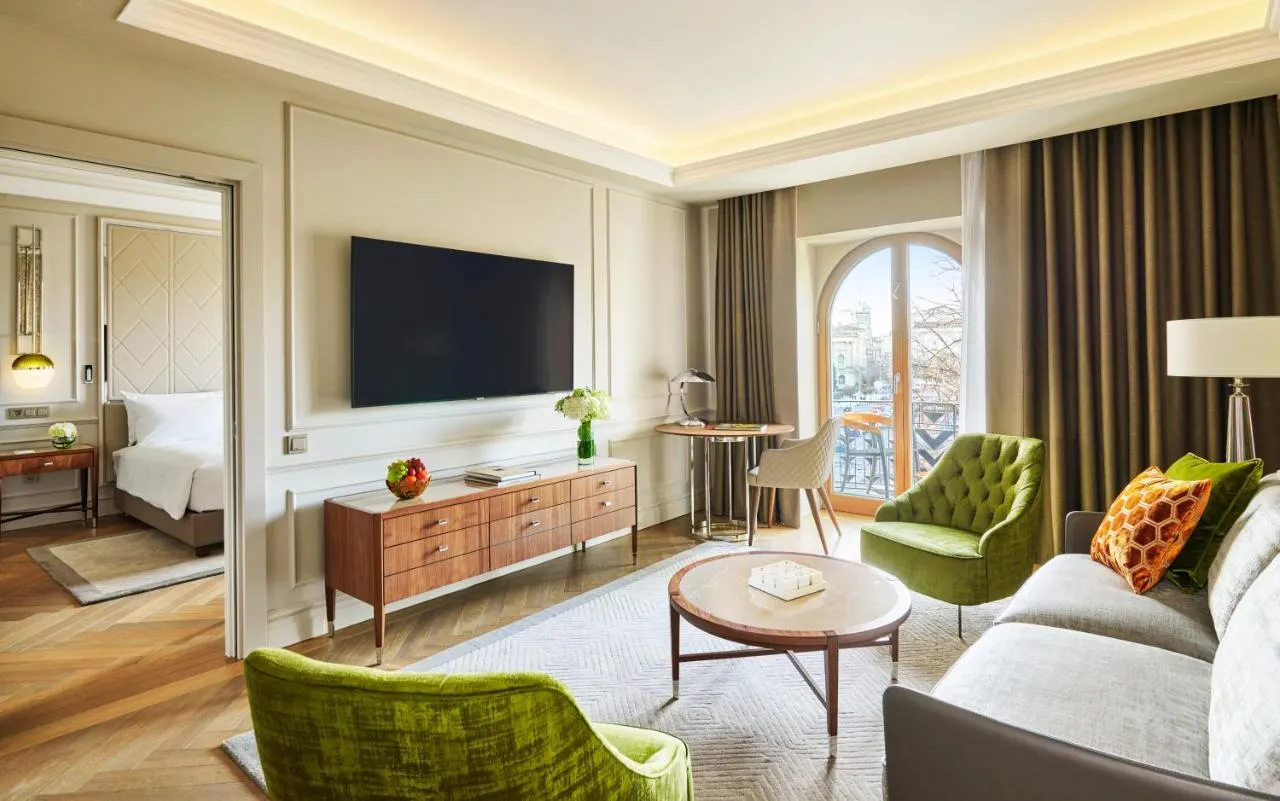 Faceți upgrade la Suită Junior King și bucurați-vă de spațiul suplimentar pentru a vă relaxa. Această suită beneficiază de o podea din lemn prelucrat și un panou de comandă inteligent al fluxului de aer. Include un dormitor cu un pat king-size și o zonă de living separată, cu o masă/stație de lucru, o măsuță de cafea și un fotoliu pentru relaxare. Baia este elegantă, cu pereți acoperiți cu marmură, și include duș tip walk-in. Blatul chiuvetei este, de asemenea, din marmură, cu o varietate de articole de toaletă exclusive. Facilitățile suplimentare includ acces gratuit la internet WiFi, un aparat espresso, halate de baie pufoase și papuci, precum și o sticlă de apă din partea casei.