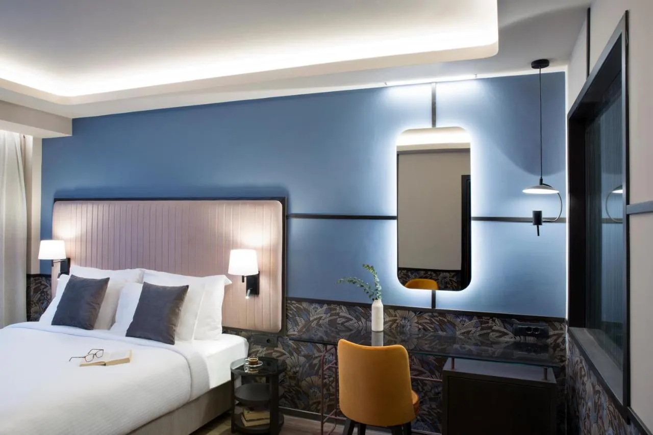 Bucătărie: Mașină de cafea Frigider Cană fierbător Produse de curățenie General : Seif Fier de călcat Facilităţi de călcat Hipoalergică Intrare privată Încălzire Izolare fonică Aer condiţionat Accesibilitate: Etaje superioare accesibile cu liftul Media/Tehnologie: TV cu ecran plat TV Telefon Canale prin satelit Servicii: Serviciu de trezire Baie: Prosoape Articole de toaletă gratuite Papuci de casă Uscător de păr Toaletă Duş Hârtie igienică Baie privată Facilităţile camerei: Priză lângă pat Mâncăruri și băuturi: Aparat pentru prepararea de ceai/cafea Dormitor: Lenjerie de pat Garderobă sau dulap Vedere: Vedere la oraș Distanțare fizică: Aer condiționat individual pentru fiecare cameră de la proprietate