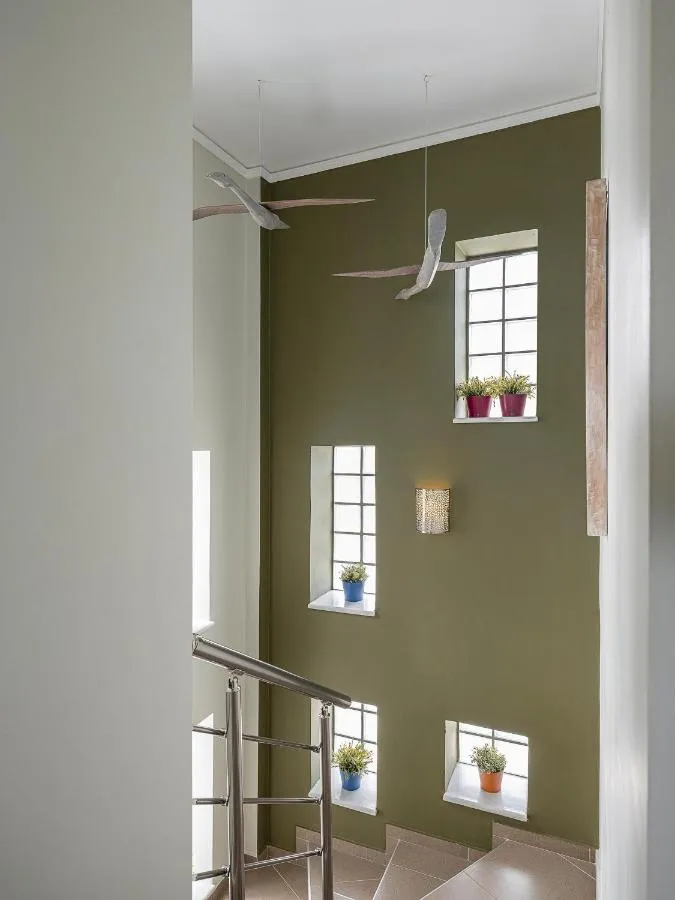 Fiecare etaj se deschide către un balcon mare mobilat, cu vedere la peisajul verde luxuriant și la Marea Cretană. Vila are, de asemenea, o zonă de luat masa în aer liber, cu facilități de grătar.