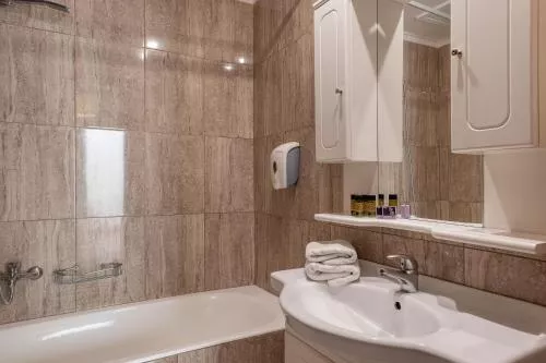 Dimensiuni: 45 mp Numar de camere: 2 camere This apartment features 1 living room, 2 separate bedrooms and 1 bathroom with a bath and free toiletries. In the kitchen, guests will find a refrigerator, kitchenware and a tea and coffee maker. Boasting a terrace with garden views, this apartment also features air conditioning and a flat-screen TV with satellite channels. The unit has 4 beds. Baie privată cu cadă