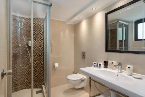 General : Seif Pardoseală de lemn sau parchet Ventilator Facilităţi de călcat Intrare privată Încălzire Plasă de ţânţari Aer condiţionat Izolare fonică Vedere: Vedere la mare Vedere la curtea interioară Media/Tehnologie: TV cu ecran plat TV Canale prin cablu Telefon Canale prin satelit Baie: Articole de toaletă gratuite Hârtie igienică Cadă Halat de baie Prosoape Papuci de casă Uscător de păr Toaletă Duş bideu Baie privată Exterior: Patio Balcon Dormitor: Lenjerie de pat Paturi extra lungi (> 2 metri) Garderobă sau dulap Facilităţile camerei: Canapea extensibilă uscător de rufe Priză lângă pat Divertisment și servicii pentru familii: Capace de siguranță pentru prize Porți de siguranță pentru copiii mici Accesibilitate: Etaje superioare accesibile cu liftul Întreaga unitate accesibilă cu scaunul cu rotile Unitate situată integral la parter Servicii: Serviciu de trezire Zonă de living: Canapea Mâncăruri și băuturi: Aparat pentru prepararea de ceai/cafea Minibar Bucătărie: Cană fierbător Curățenie și dezinfectare: Dezinfectant pentru mâini