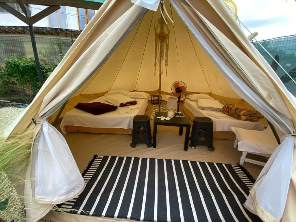 Numar de camere: 14 camere This tent has a shared bathroom, a tea and coffee maker, a seating area as well as an outdoor dining area. The unit has 1 bed.