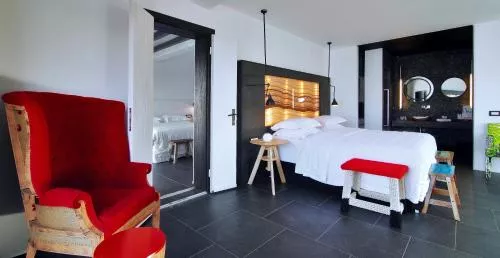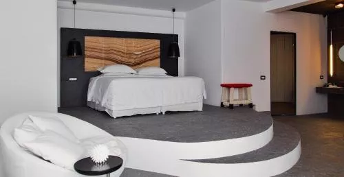 Dimensiuni: 75 mp Numar de camere: 1 camera Această suită luxoasă oferă o terasă spațioasă, cu piscină infinită și vedere la nisipurile aurii ale plajei Elia.