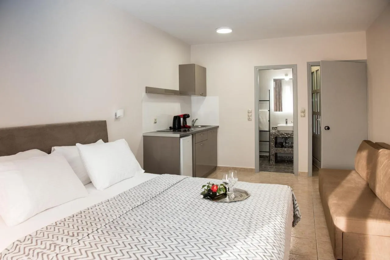 La 1 km de plaja Kalamaki, Avyssos Residents este o proprietate recent renovată situată în Kalamaki, care dispune de camere cu aer condiționat, WiFi gratuit și parcare privată. Proprietatea oferă vederi spre mare și munte și se află la 1,6 km de plaja Crystal. Aparthotelul dispune de camere pentru familii.