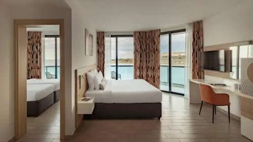 Situat pe Golful Sfântul Paul din Qawra, acest hotel de pe malul mării oferă o priveliște superbă asupra Mării Mediterane. Dispune de o piscină exterioară pentru familii cu două tobogane și o zonă de joacă acvatică pentru copii, precum și de o piscină interioară pentru familii. De asemenea, oferă o piscină pe acoperiș doar pentru adulți, cu jacuzzi și vederi panoramice.