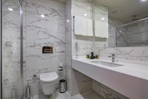 La hotel, fiecare cameră este dotată cu un balcon. Toate unitățile de la Aydinbey Queen’s Palace & SPA sunt echipate cu un televizor cu ecran plat și produse de toaletă gratuite.