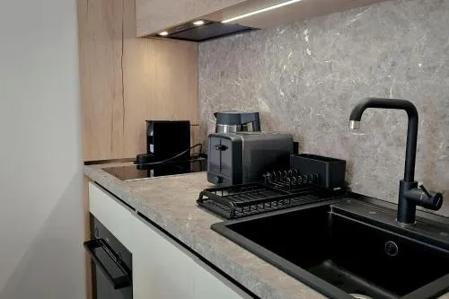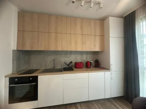 AZUR PREMIUM RESORT este un complex luxos situat în cea mai verde și liniștită zonă a Varna - stațiunea "Sf. Constantin și Elena", la doar câțiva metri de plajă și la numai 10 minute de centrul orașului. Conceptul general al complexului se concentrează pe un stil de viață de înaltă calitate și sănătos, îndeplinind așteptările clienților moderni pentru un standard mai înalt, securitate, confort, estetică, spațiu și legătură cu natura. Situat la doar 9 km de centrul orașului, 15 km de Aeroportul Varna și la câțiva metri de malul mării, este cea mai bună alegere pentru șederea dvs., indiferent dacă călătoriți în scop de afaceri sau de agrement! AZUR PREMIUM RESORT oferă două piscine în aer liber, un centru spa, o sală de sport, un restaurant italian de primă clasă cu o bucătărie excelentă, un salon de coafură, un hipermarket, o farmacie, parcare în aer liber securizată și acces controlat. De pe terasa dvs., puteți admira o frumoasă vedere asupra curții interioare verzi și puteți respira aerul proaspăt al mării! Apartamentele sunt complet mobilate, cu un interior elegant și un sentiment autentic de confort! Bucătăriile sunt echipate cu electrocasnice și tacâmuri de înaltă calitate, iar există o zonă de luat masa și un living cu mobilier redus (o canapea extensibilă), un televizor și Wi Fi. În dormitor, veți găsi un pat dublu confortabil, lenjerie de pat și prosoape, iar baia dispune de o cabină de duș și o mașină de spălat. Facilități suplimentare includ un uscător de păr, un fier de călcat și o masă de călcat.